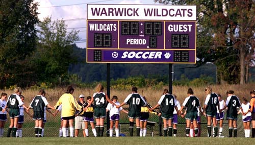 Warwick Valley and Minisink Valley girls' soccer team players hold